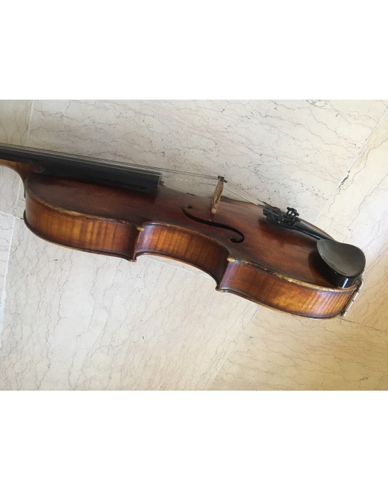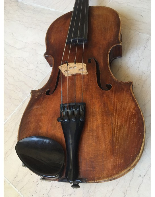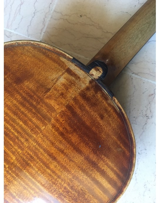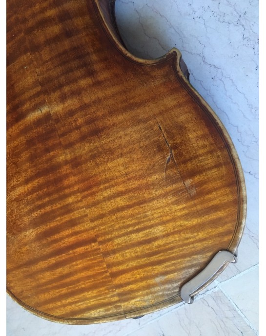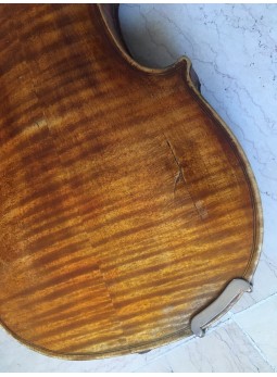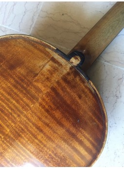 Il y a des petites fractures et réparations anciennes qui ne modifient pas sa sonorité mais minimisent sa valeur.